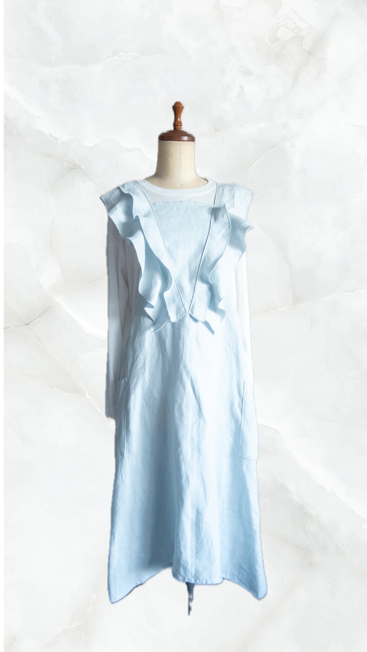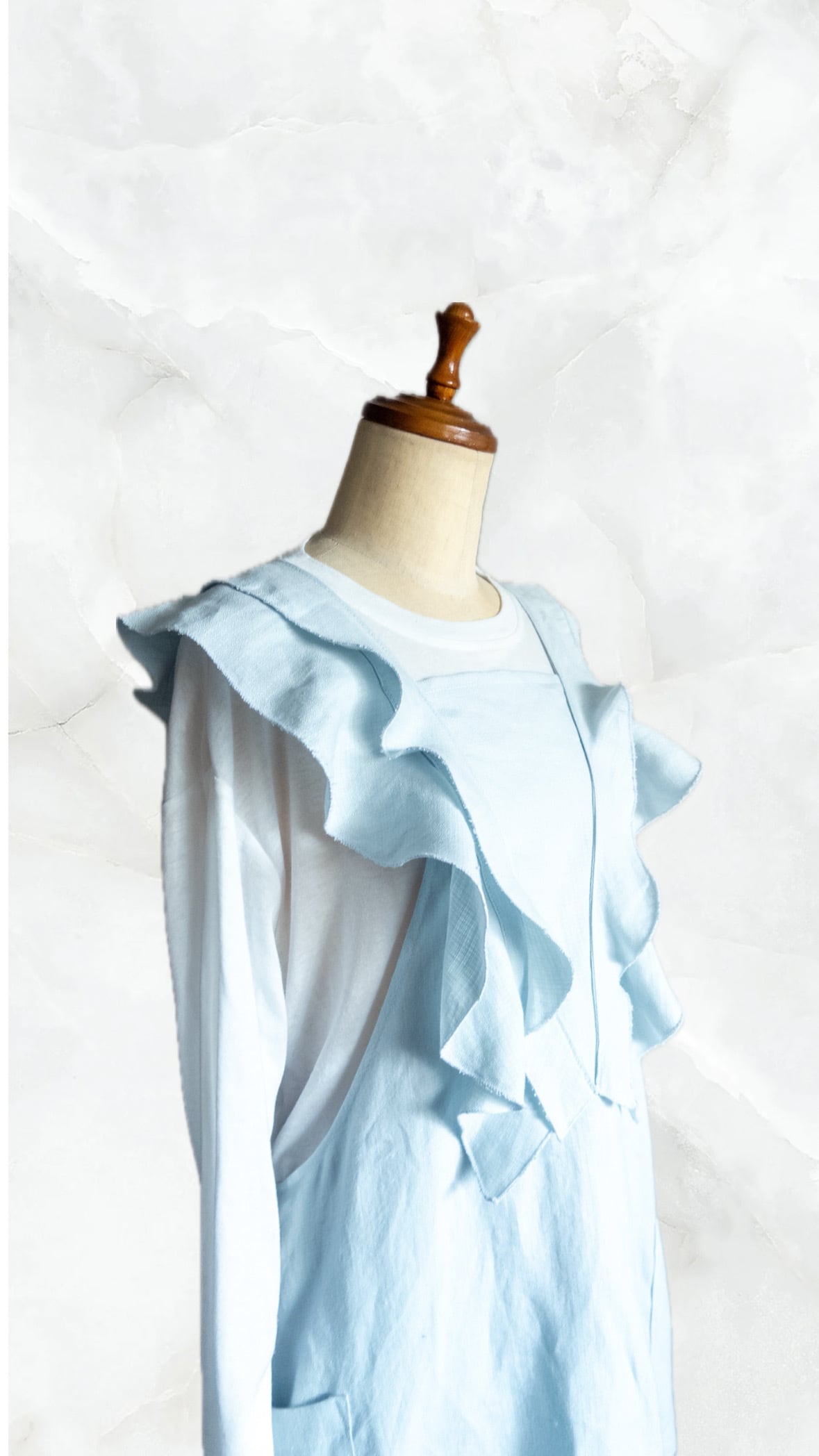 上品さを追求した大人のためのフリルエプロンです!シンプルながらも存在感のあるフリルが、あなたのキッチンスタイルを一段と引き立てます。前丈93cm、横188cmのサイズで、しっかりとカバーしながらも軽やかに着用できます。