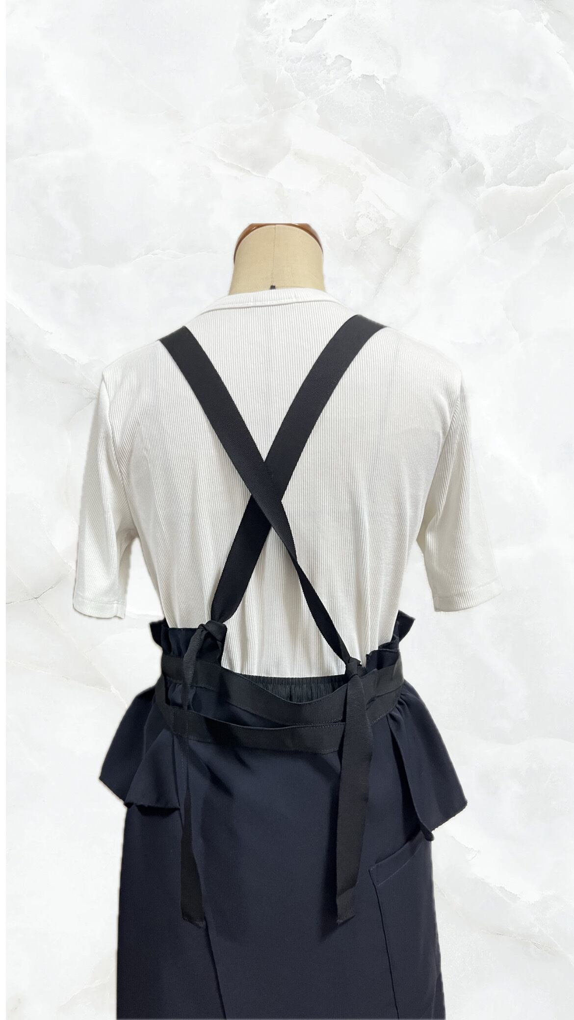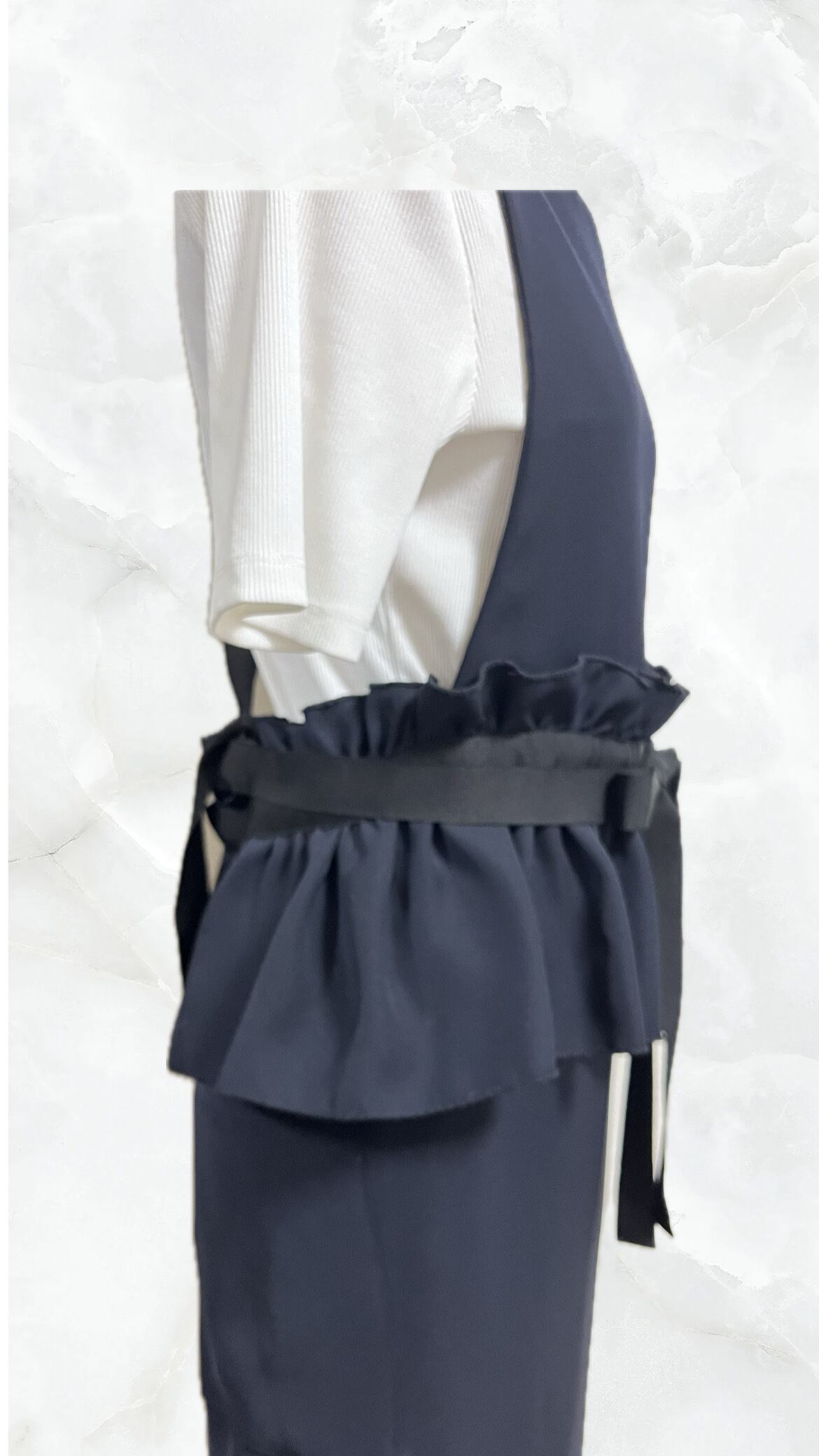 ワンピースのようなネイビーエプロン