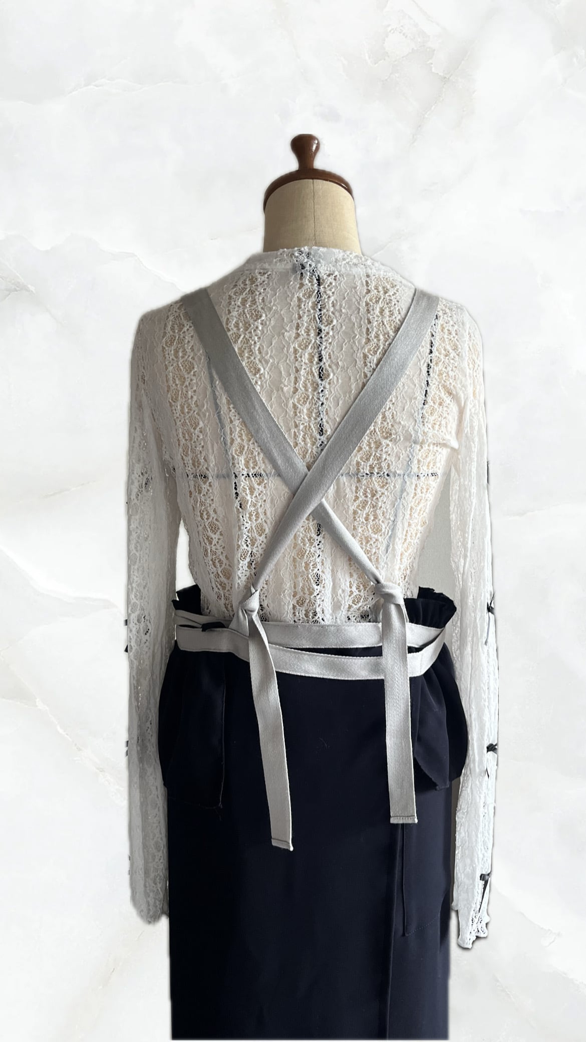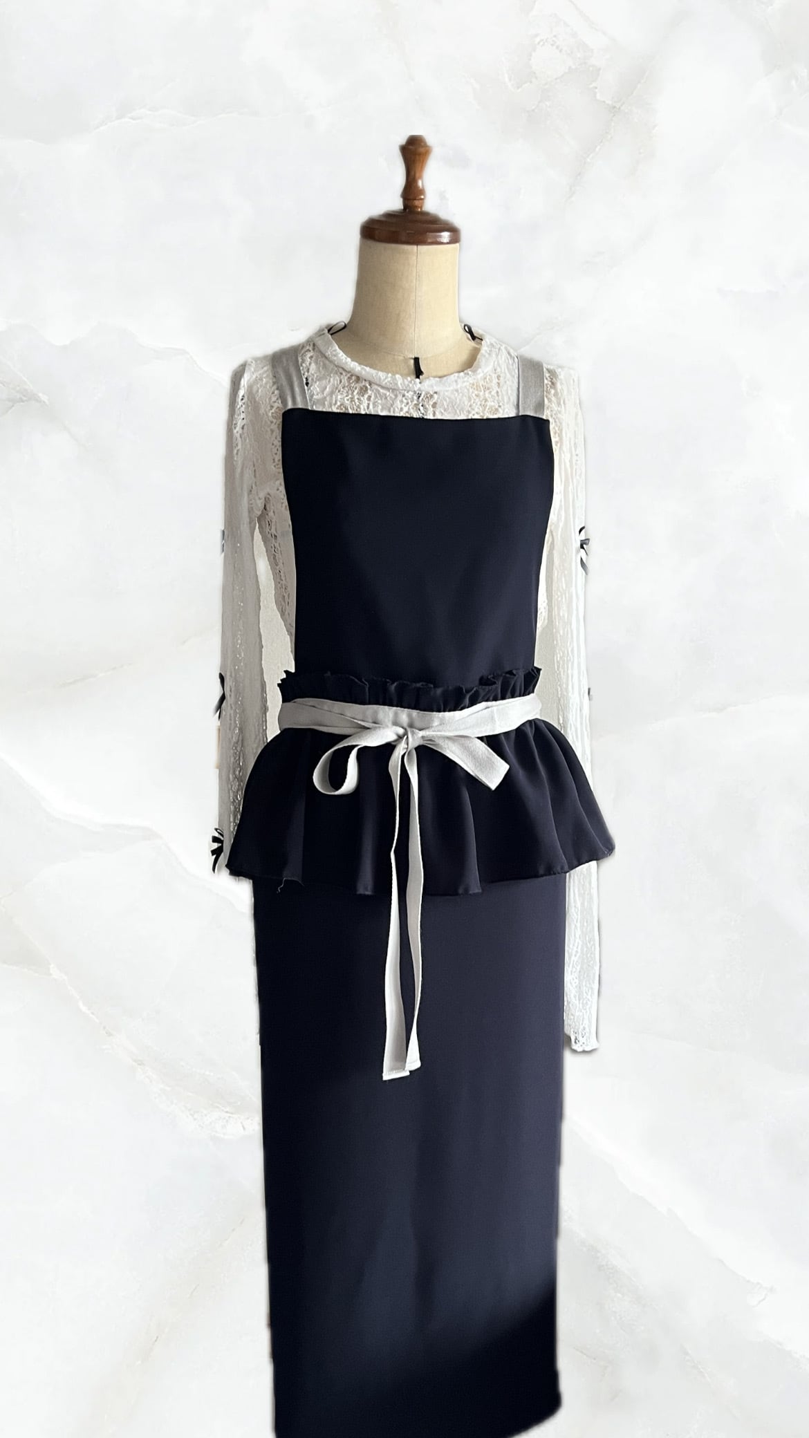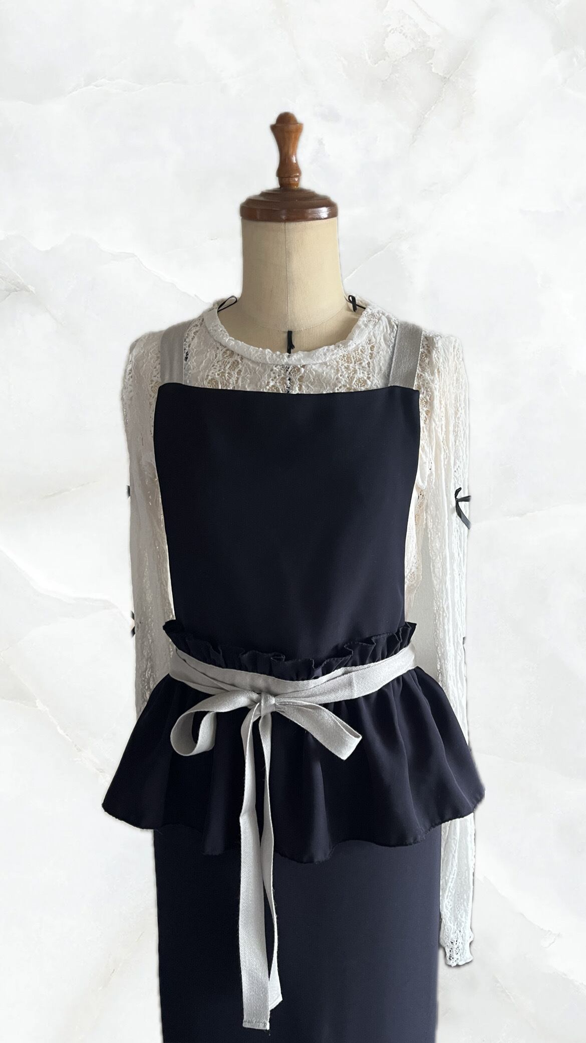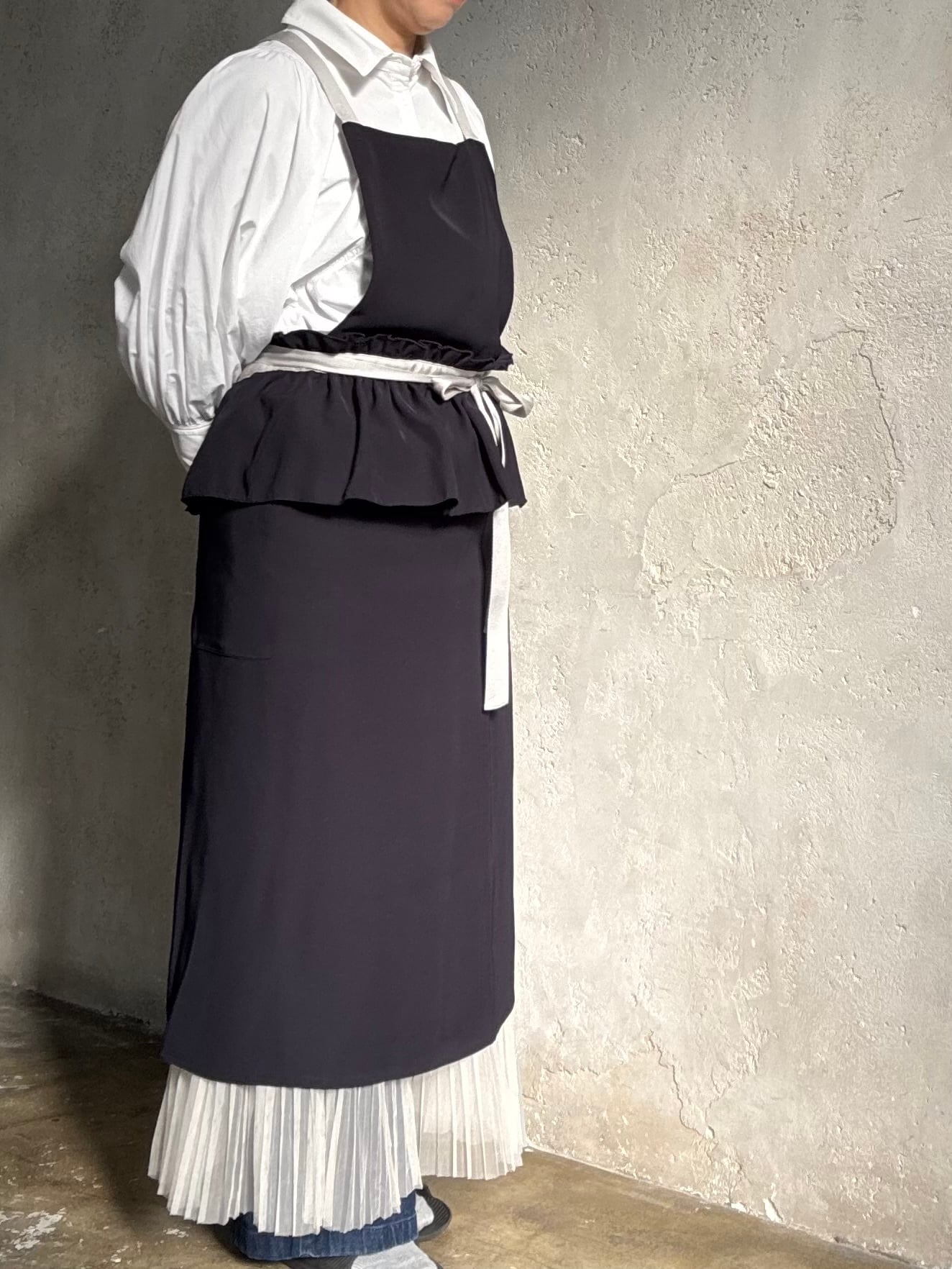 ワンピースのようなネイビーエプロン